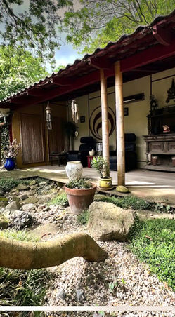 It is a large unheated swimming pool and is located in the middle of our Japanese garden.